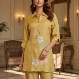 Be the first to review “Elegant Mustard Roman Silk Pant Set”