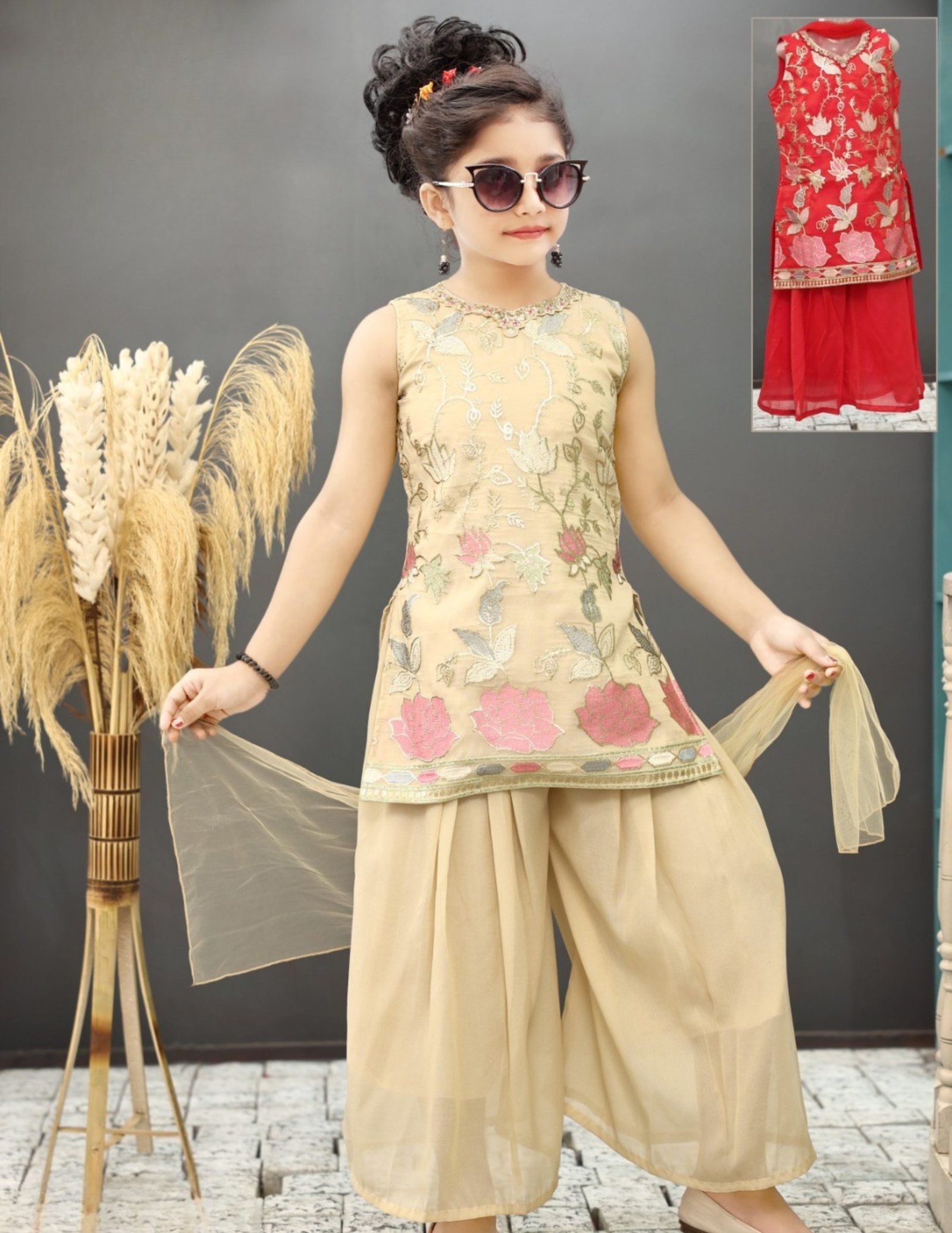 Design: Floral embroidered sleeveless kurta with dhoti pants