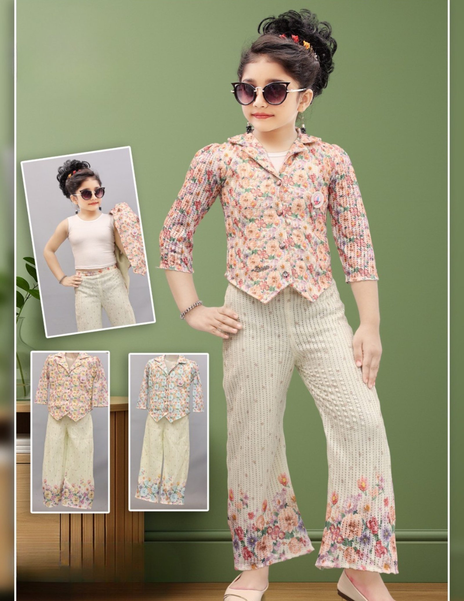 Be the first to review “Girls Premium Cotton Floral Jacket & Palazzo 3-Piece Set”