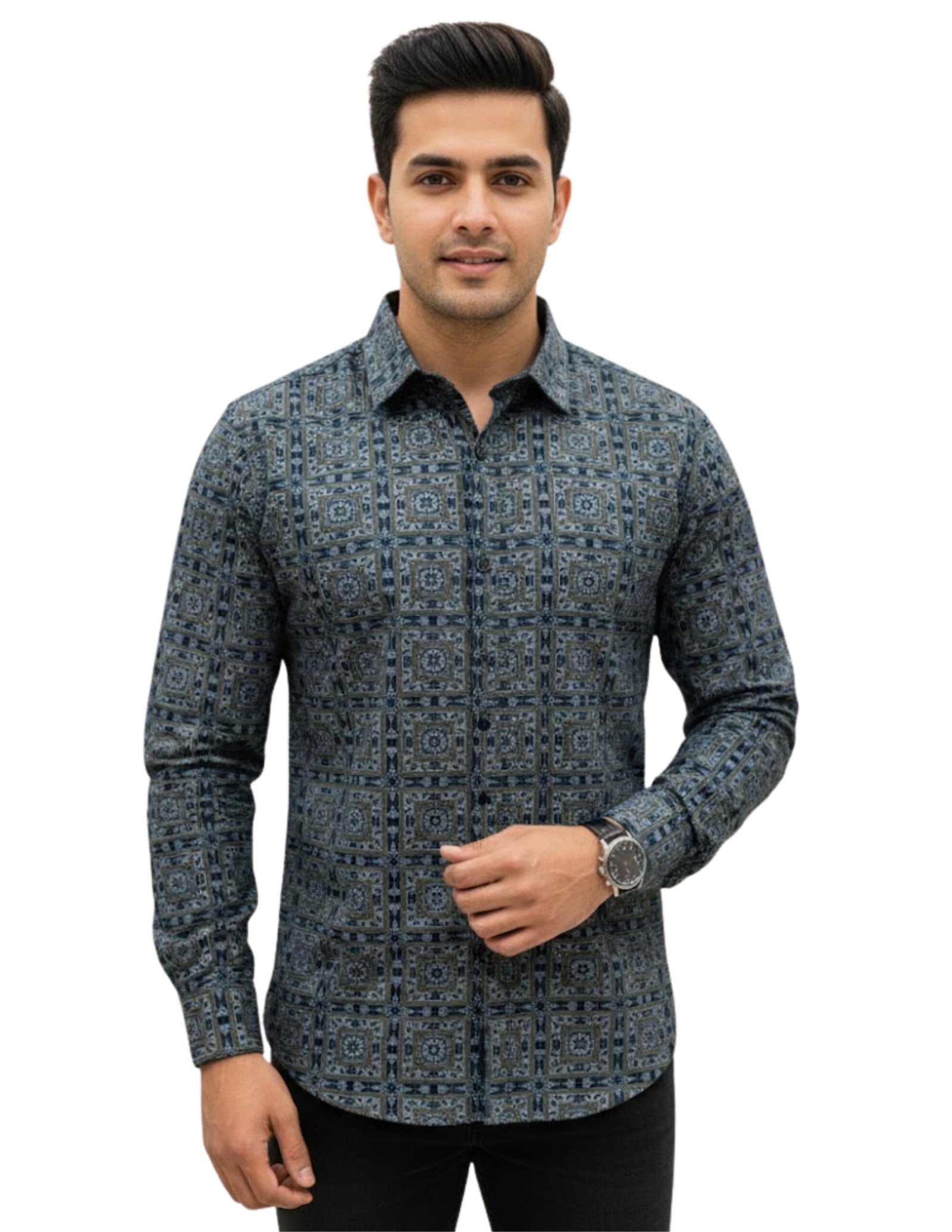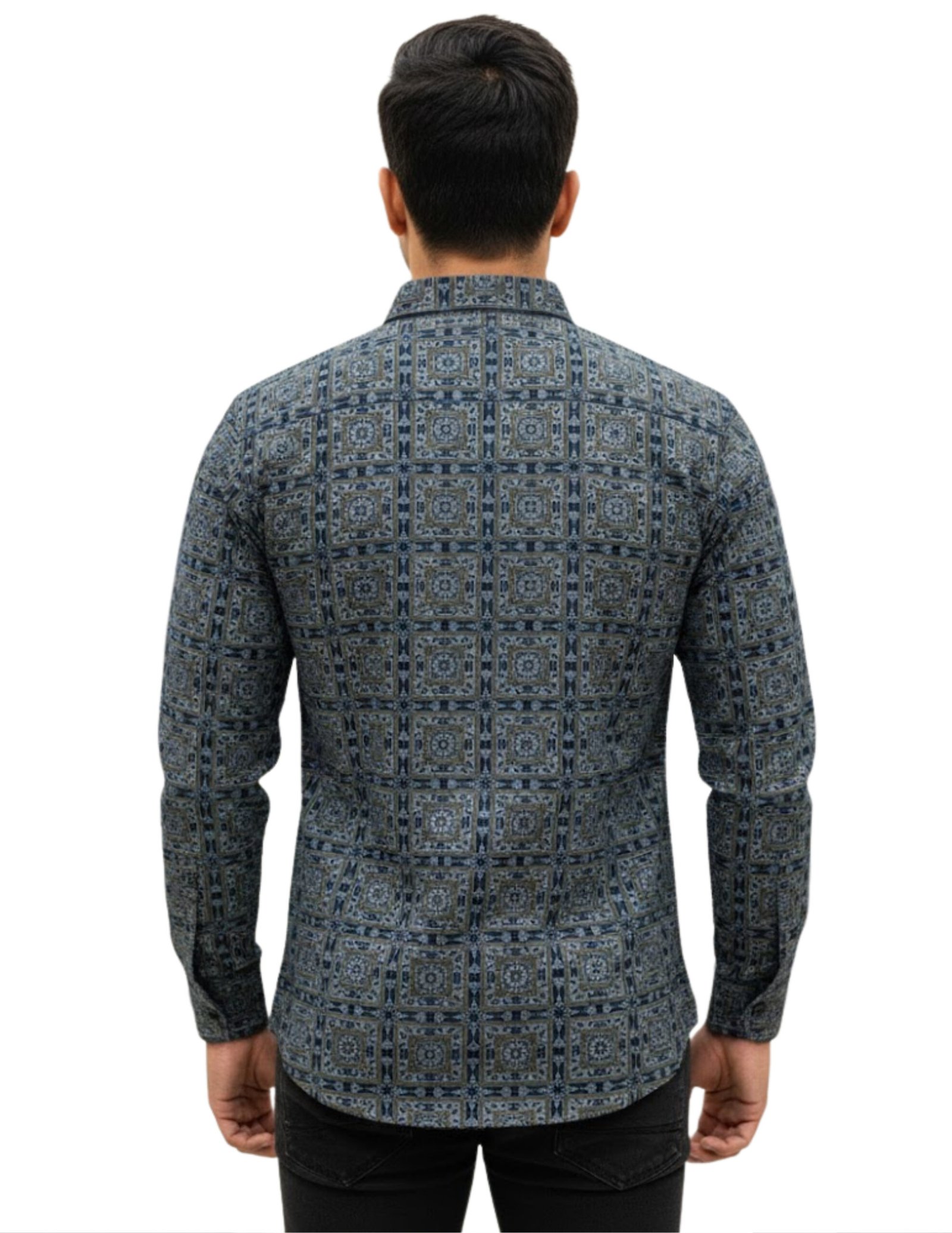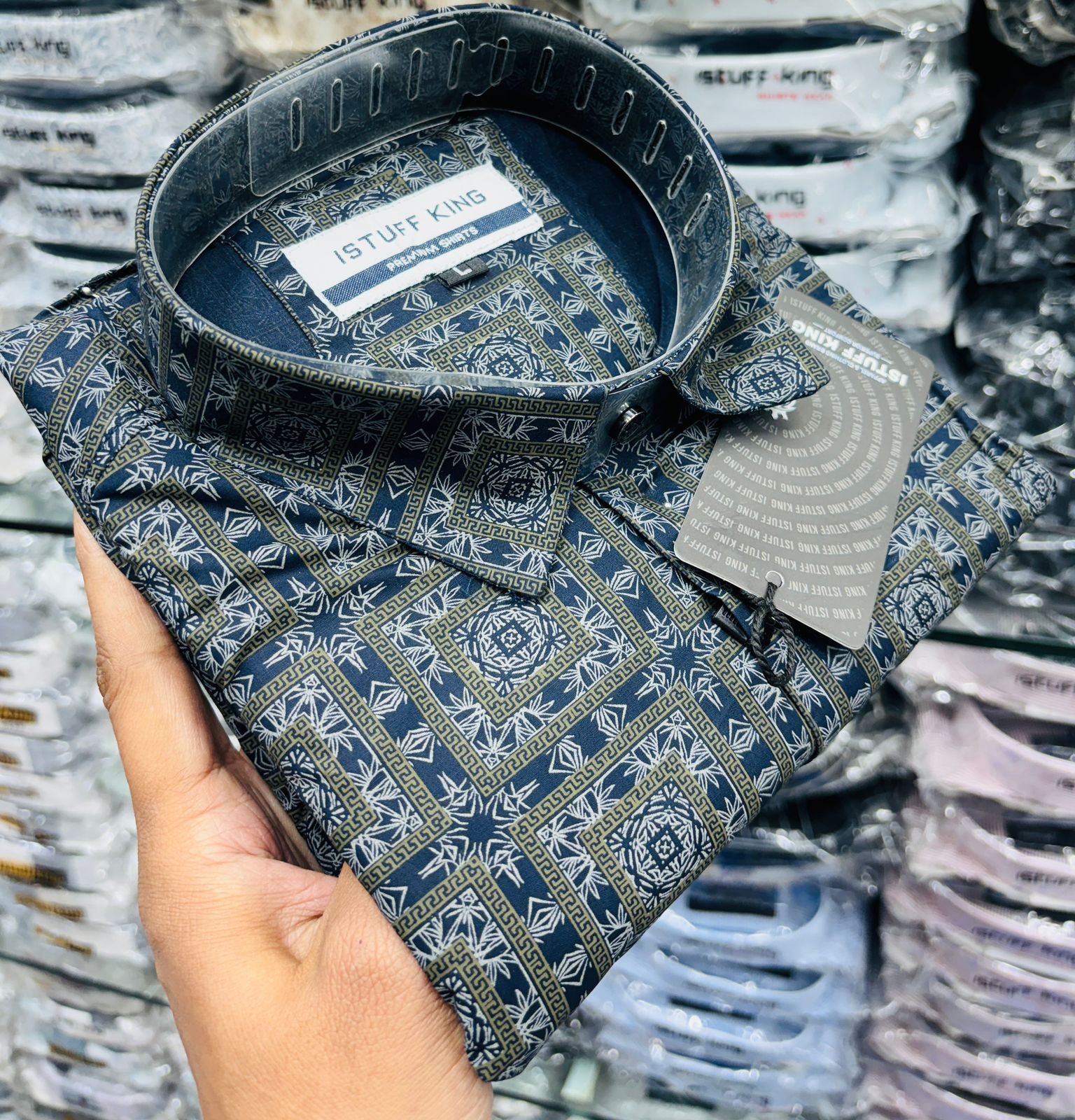 Elevate your wardrobe with this ISTUFF KING premium printed shirt. Crafted from breathable cotton fabric, it features a unique geometric pattern that blends traditional vibes with modern style. Perfect for parties, weddings, or smart-casual office wear.
